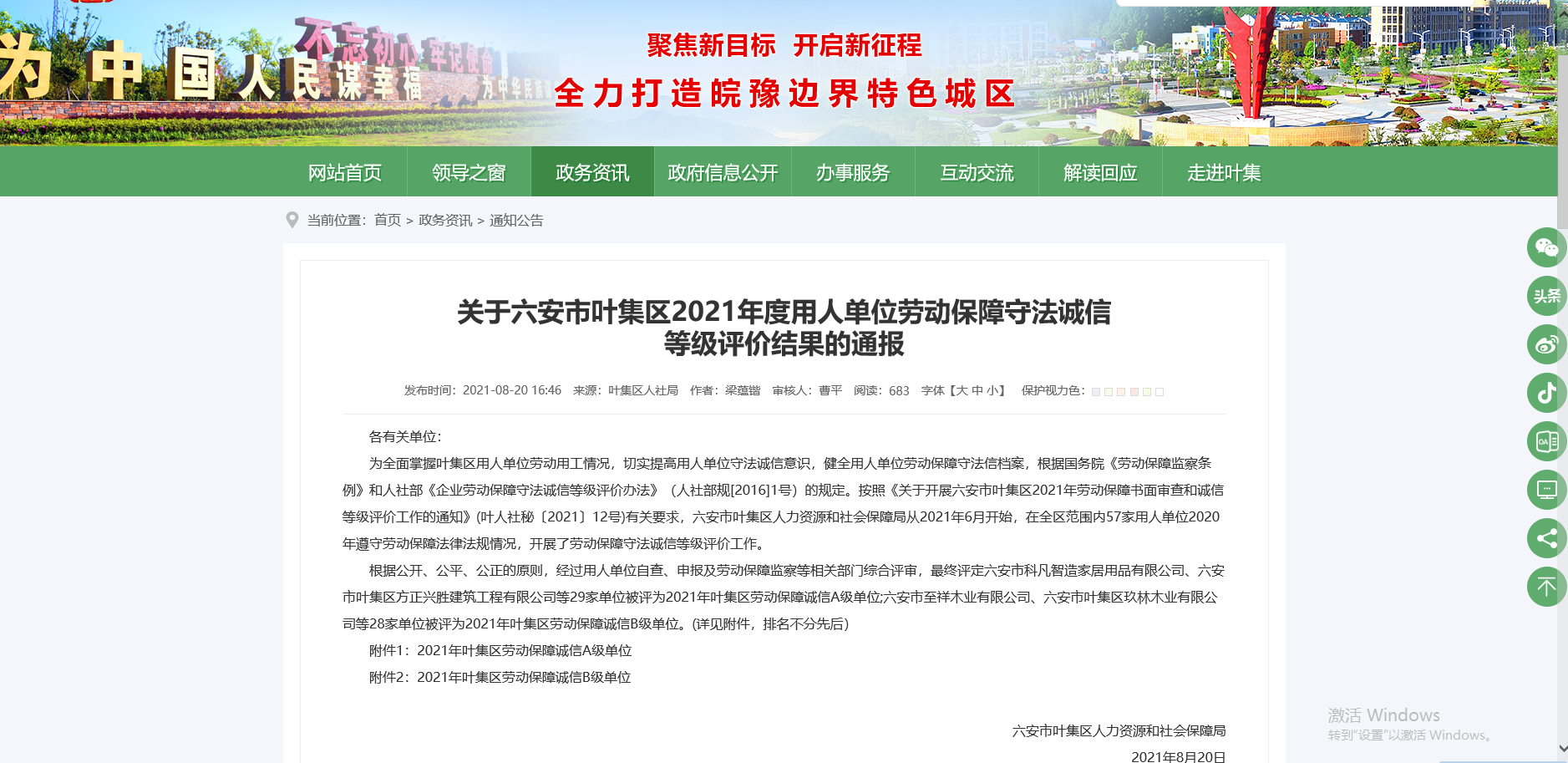 啟初建筑被評價為六安市葉集區(qū)2021年度用人單位勞動保障守法誠信等級A級